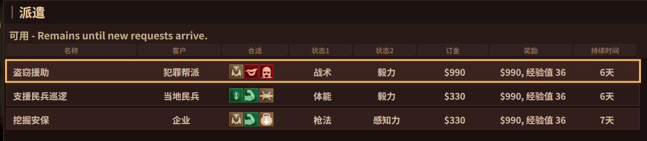 所以在主要軍事任務之外,可以讓傭兵接下各種賞金派遣來賺取酬勞,確保公司資金平衡,有餘力造更好的木棒打更厲害的小龍蝦。