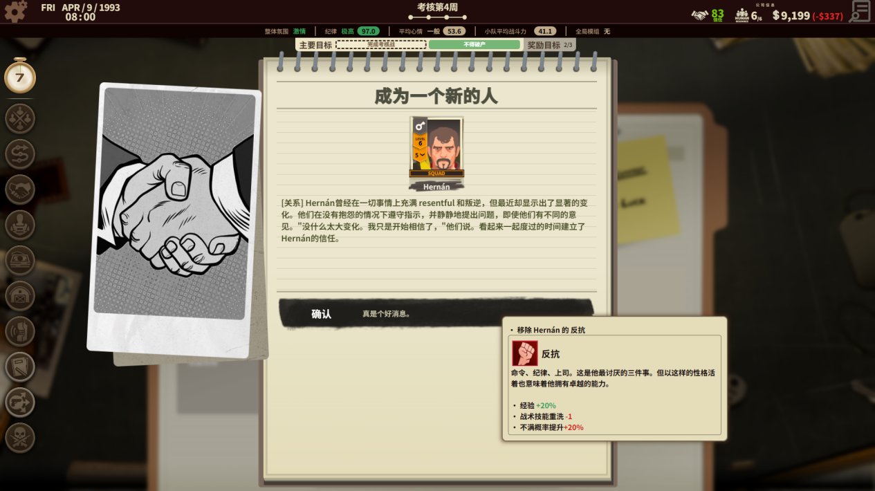 可以看出《私人軍事經理》在僱傭兵的養成方面很豐富,但作爲經理光養成僱傭兵可不夠,還要對公司進行整體的養成。