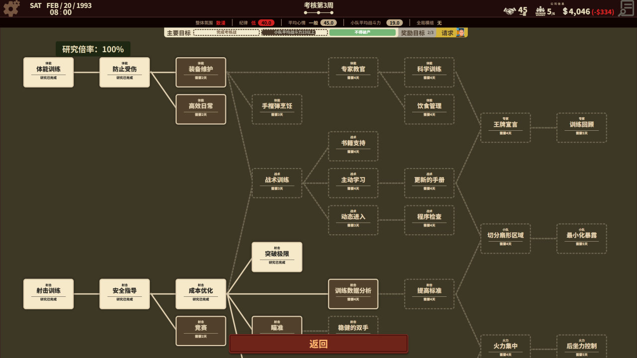 包括且不限於在公司進行各項研究,加大訓練場地等。所謂研究就是遊戲內的技能樹,技能樹很豐富,覆蓋到的範圍特別多。