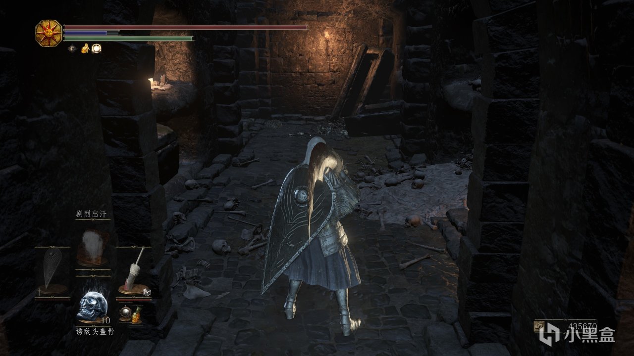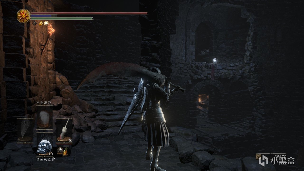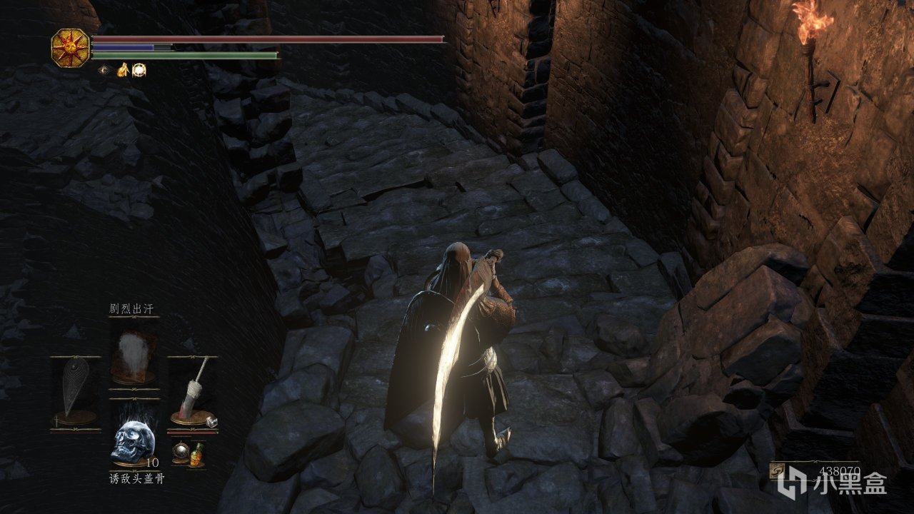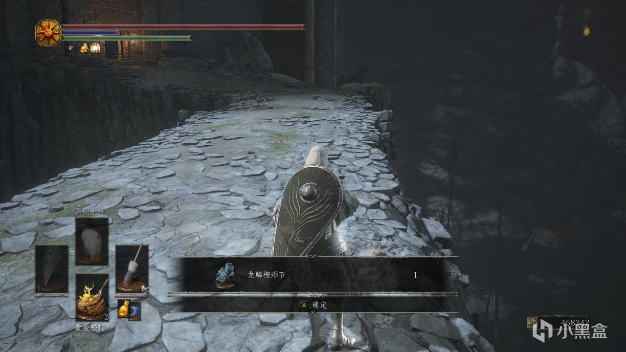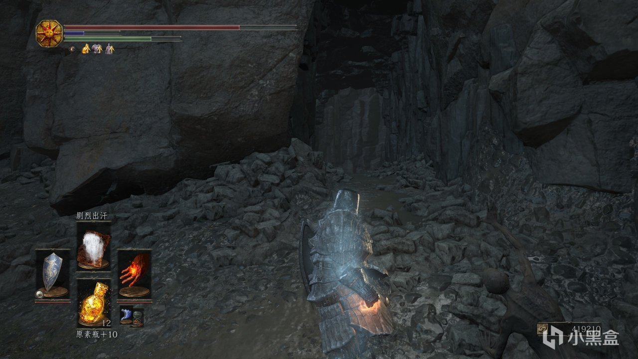 黑鐵頭,哈維爾甲,羽翼騎士手,黑鐵腿,火方石戒指,劇烈流汗,火抗89的龍圖紋盾,紅蟲藥丸