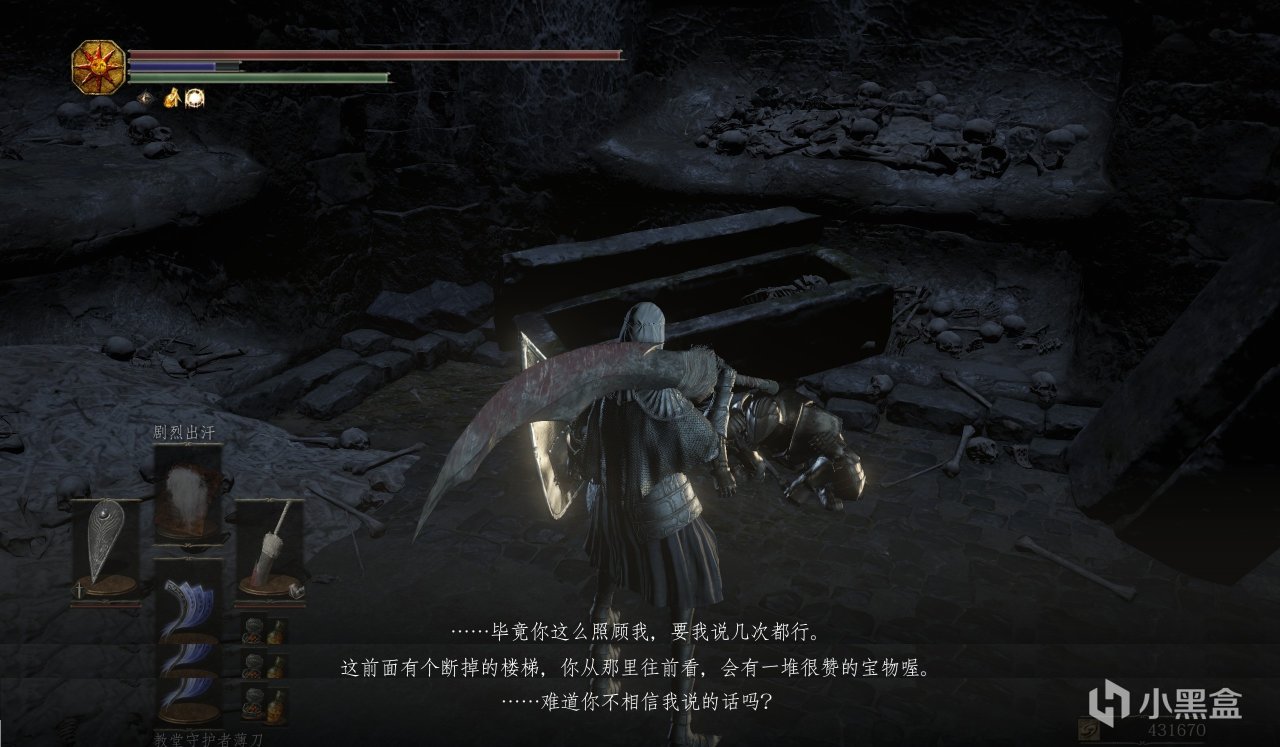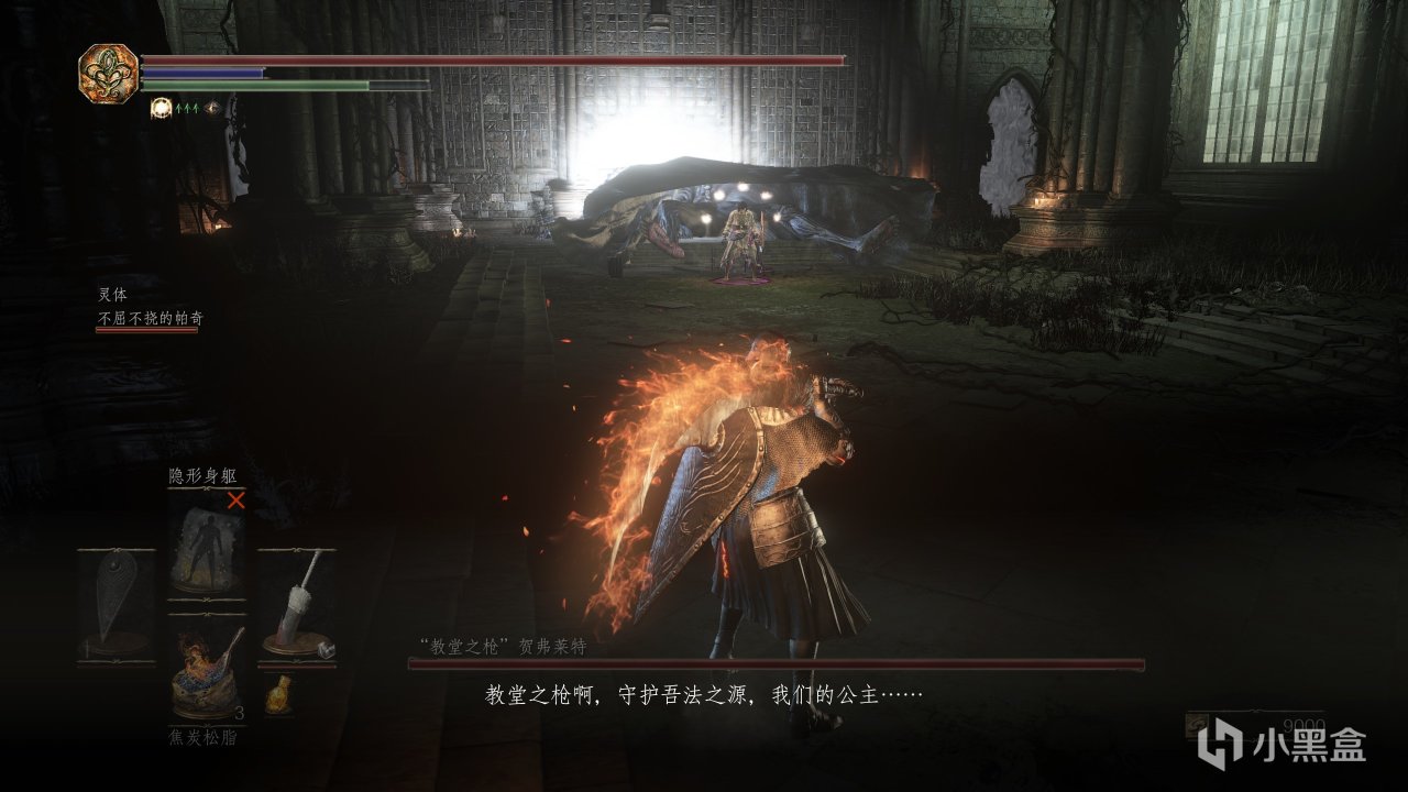 線下則是一個強度適中的npc——教堂之槍賀弗萊特,有着所以人形npc共有的弱點,叫上拉普隨便摁着打