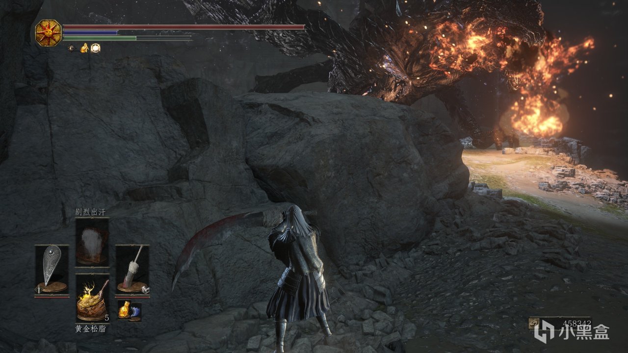 舉盾喫龍息就掉一點點血,一定要舉盾,米寶在這裏吐的火即使是從背後來盾牌也能擋,不用去對方向,聽到聲音就舉盾