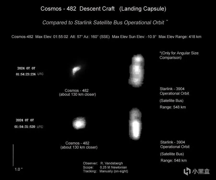 荷蘭衛星追蹤器Ralf Vandebergh拍攝的宇宙482號在地球軌道上的望遠鏡圖像