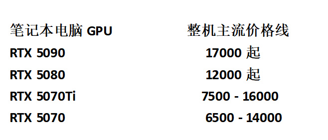 這樣基本上確定了今年已經上市的RTX 50系GPU筆記本的主流價格線。