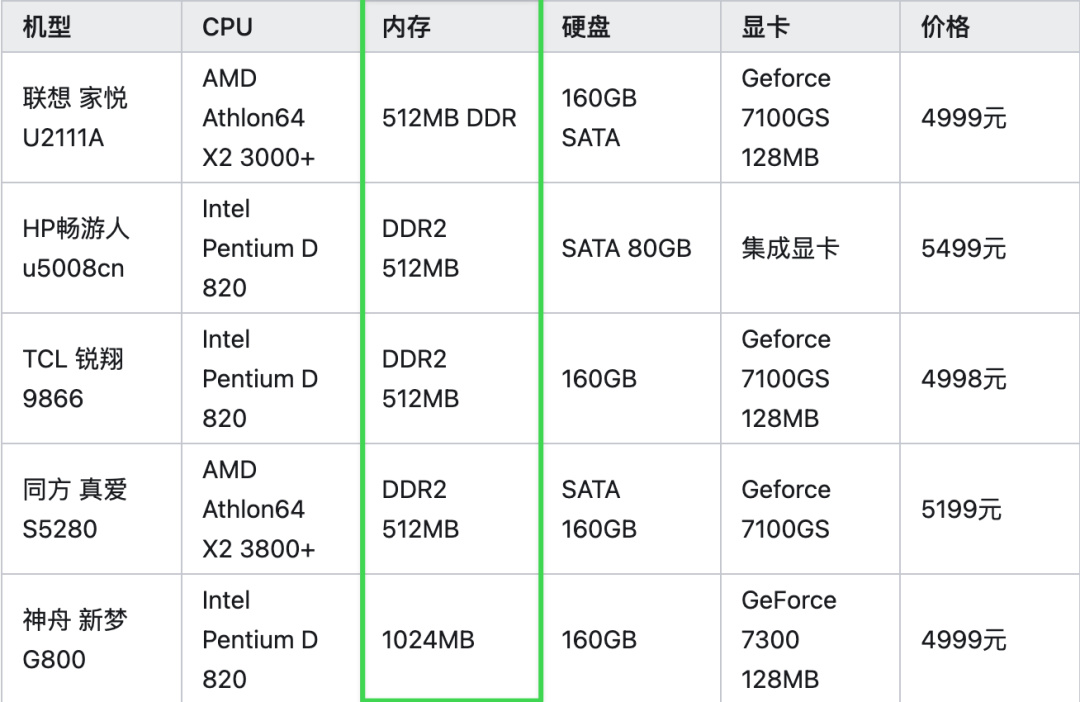 當時( 2007年 ) 5000 價位主流機器的標配內存,一般就是 512M 或者 1G。