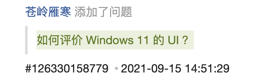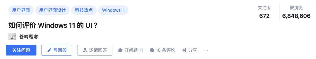 像知乎上有個熱門問題叫“ 如何評價 Windows 11 的 UI ”,它在 21 年 9 月就提出了。
