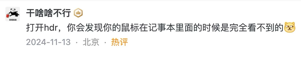 類似的“ 消失術 ” 還出現在鼠標上,只要在 HDR 模式下,鼠標就和記事本融爲一體,根本找不到。