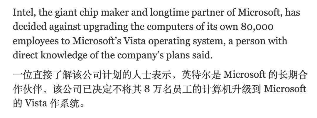 所以當時很多用戶升級到 Vista 後體驗就非常差,甚至微軟的老 CP 英特爾當時都決定不把公司員工升級到 Vista。