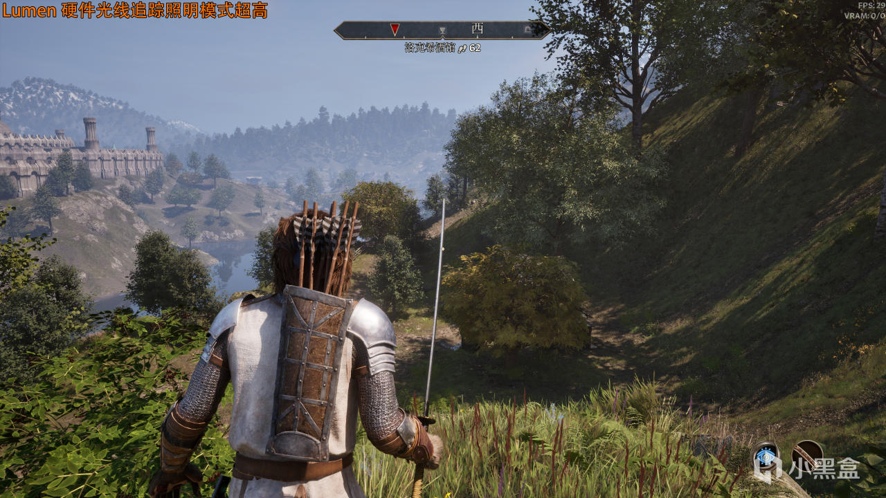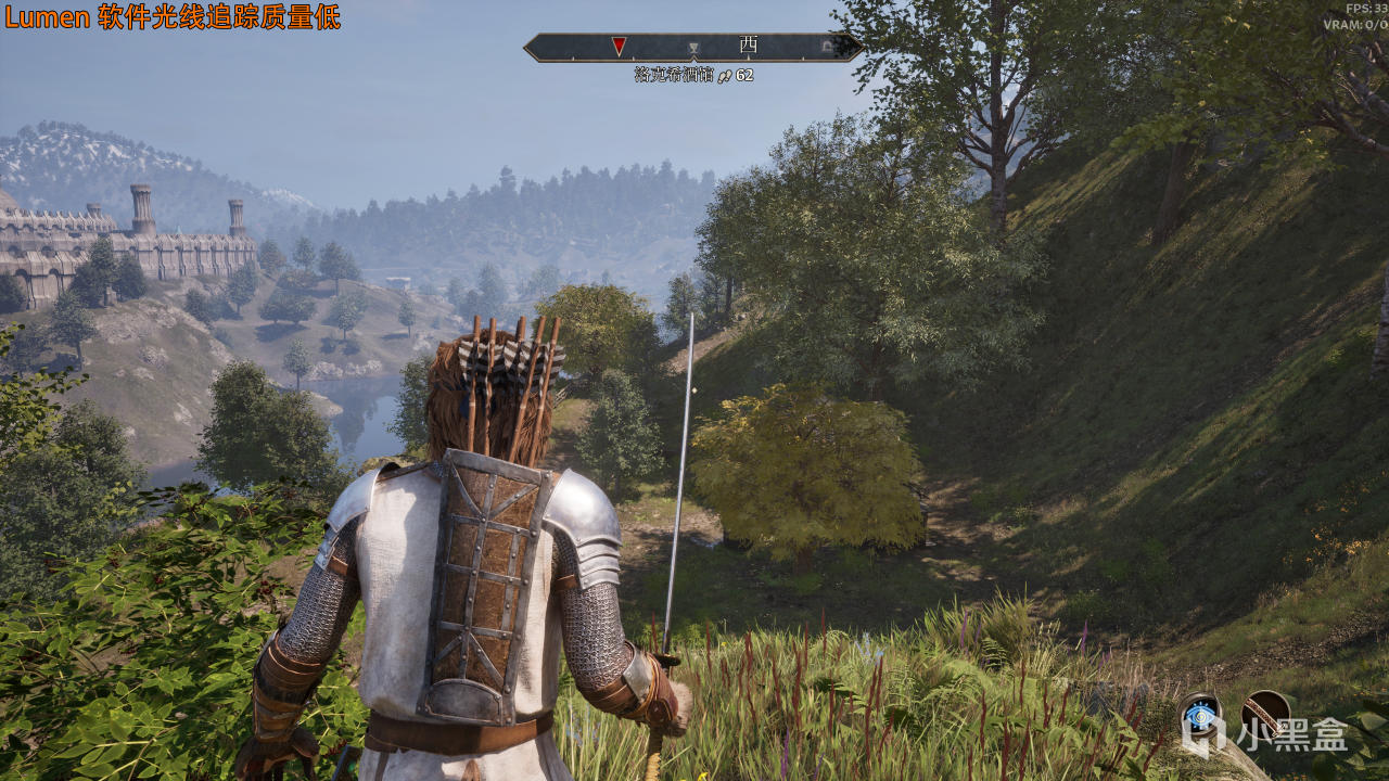 测试场景方面,游戏体验5小时下来,最大感受就是开放世界的野外,和洞穴完全就是两种帧数表现,所以作为基准测试显然要选择前者,具体流程是这样的:固定是白天晴天气,洛克希酒馆门口开始向夏尔曼堡垒方向出发,在没有到达堡垒之前向右拐下坡,一直到湖边后结束测试。