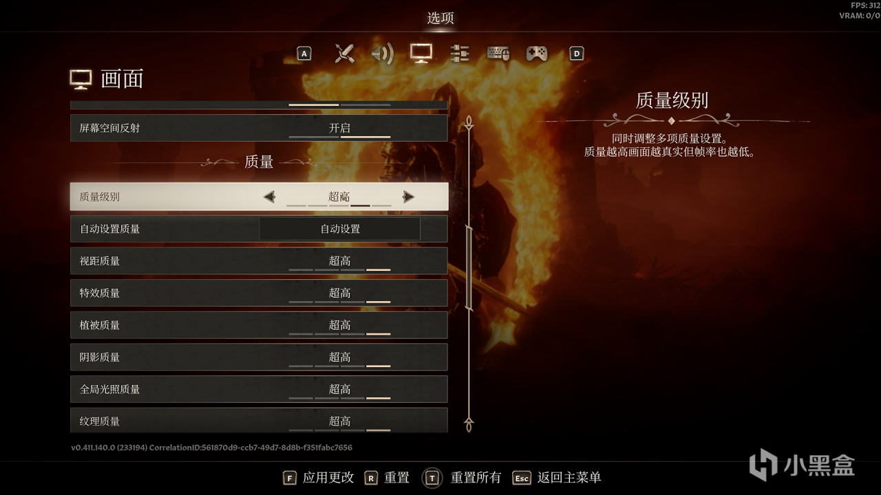 原版已经是快20年前的游戏,《上古卷轴IV:湮灭重制版》自然是采用更现代化的UI设置界面,尽管中文翻译还有一些瑕疵,操作逻辑还是在线的,整体预设分为低、中、高和超高四种,其中屏幕空间反射是独立其他选项不受预设影响,因为和默认开启的lumen有关联。