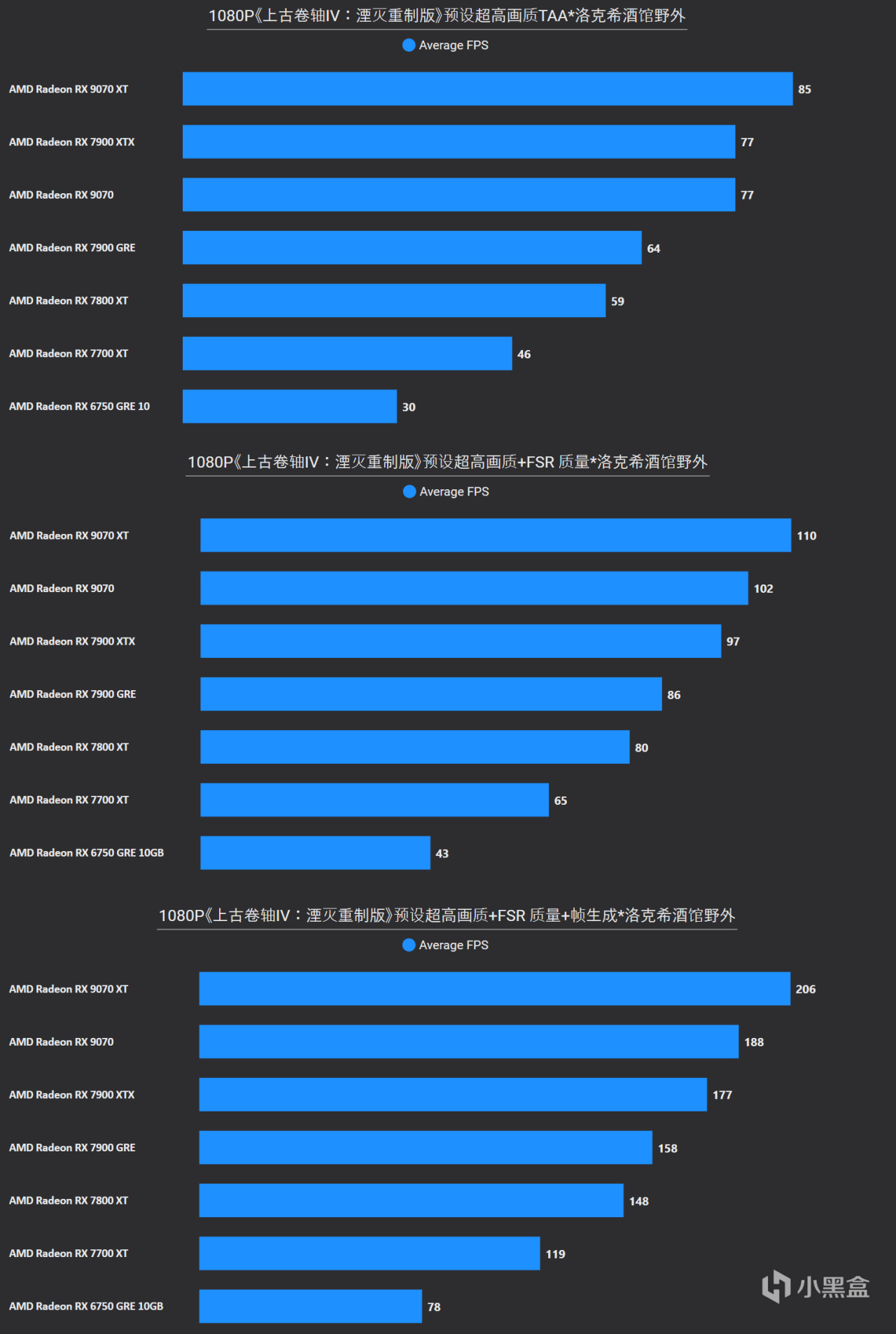不过由于《上古卷轴IV:湮灭重制版》采用虚幻5引擎,全局强制软光追,对于显卡要求门槛实属不低,个人建议是10GB显存起步,1080P至少推荐RX 7700 XT,RX 7800 XT则是应对2K没问题,4K自然就是RX 9070系列的天堂,在硬件光追开启、光栅压力适中情况下,RX 9070系列甚至好于上代旗舰XFX。