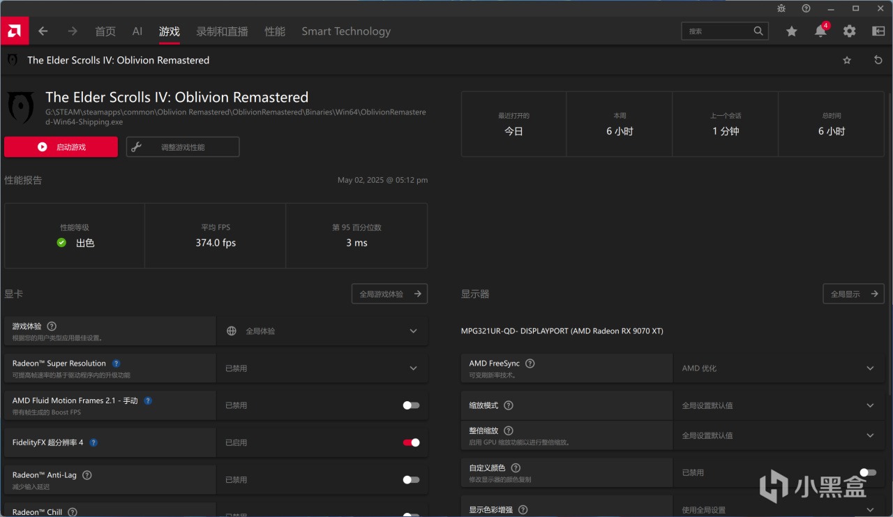 内存是两根DDR5 6000C26 16GB*2套装,操作系统是Windows 11 24H2最新版本,显卡驱动是AMD Adrenalin 25.4.1 (Optional),针对《上古卷轴IV:湮灭重制版》有性能优化,而且原生支持FSR 4技术。