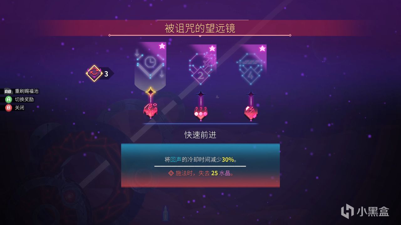 新版本詛咒望眼鏡房只有紫色品質的BUFF,現在進這房間收益很高,除了亞力王國,跟前2村的回聲房(找蝘蜓座),我基本是看到必進,而且會進2次。