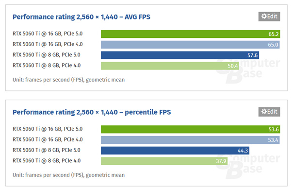 RTX 5060 Ti 8GB已經是姥姥不疼舅舅不愛,ComputeBase的最新測試又給它的棺材板釘了一顆釘子,針對大量遊戲下的實際體驗和PCIe 5.0/4.0對比做了仔細。