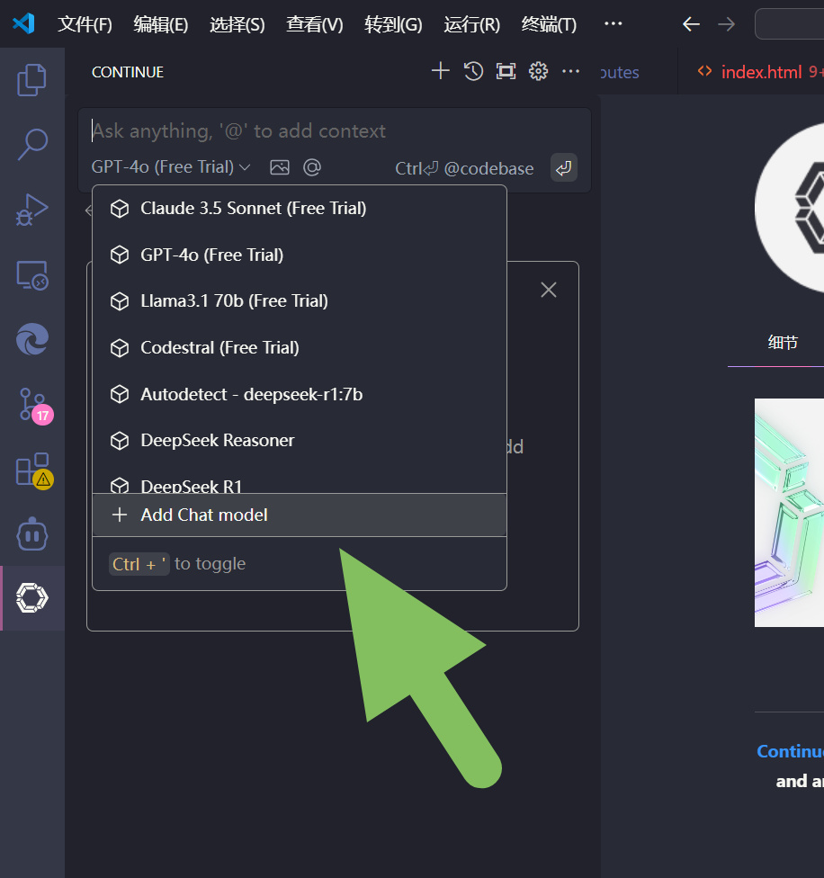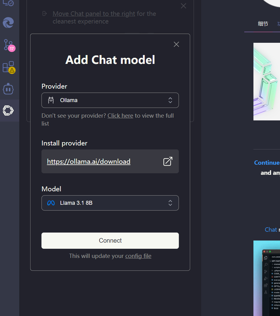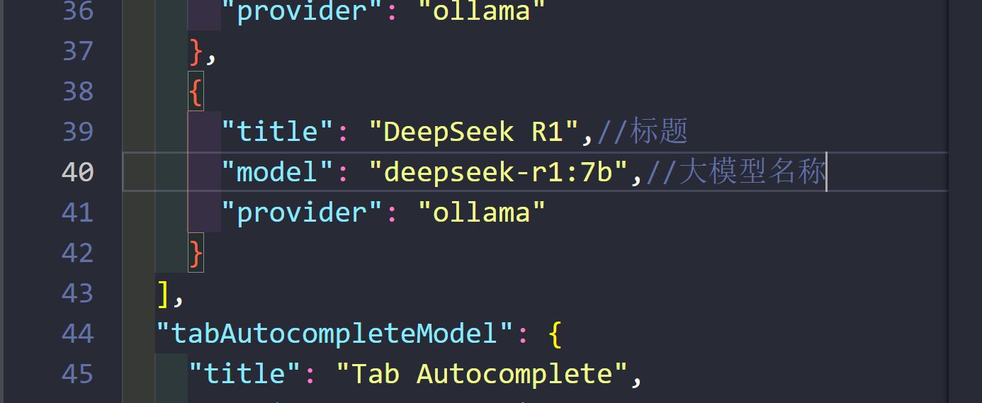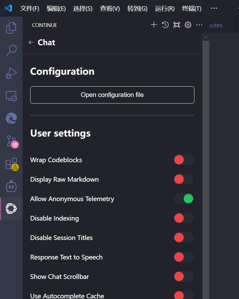 点击Open configuration file打开config.json文件,在这里找到我们刚刚添加的ollama,自己改成自己的大模型