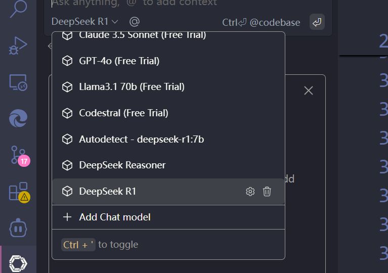 在这里Provider我们选择ollama,但是model里面没有deepseek R1所以我们这里随便选择就可以了
