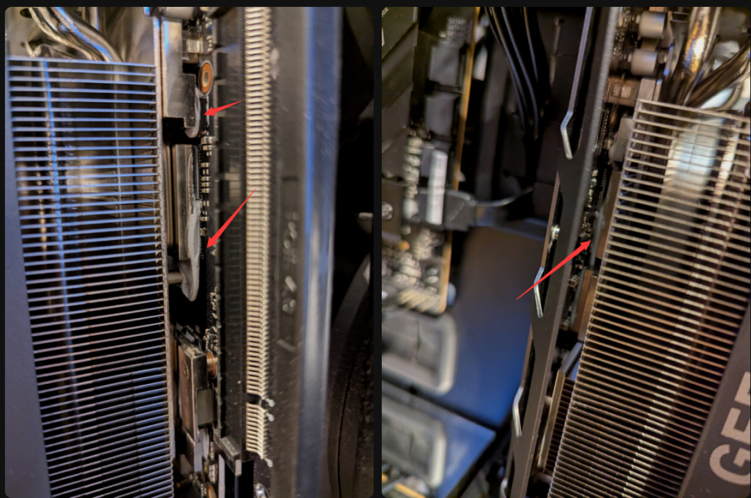 我的显卡装在联力SUP01机箱里,GPU基本上是直立的,所以显卡的散热凝胶会滴到接口方向。目前为止,内存模块没有过热。我不会把它送到技嘉维修店,因为我对技嘉的维修印象不太好,所以在它过热或停止工作之前,我会一直用下去。 不过,如果你有垂直机箱或支架,那就要注意了。