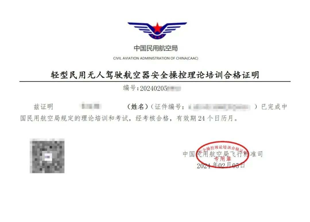 - 考試合格後,考生將獲得CAAC無人機執照。