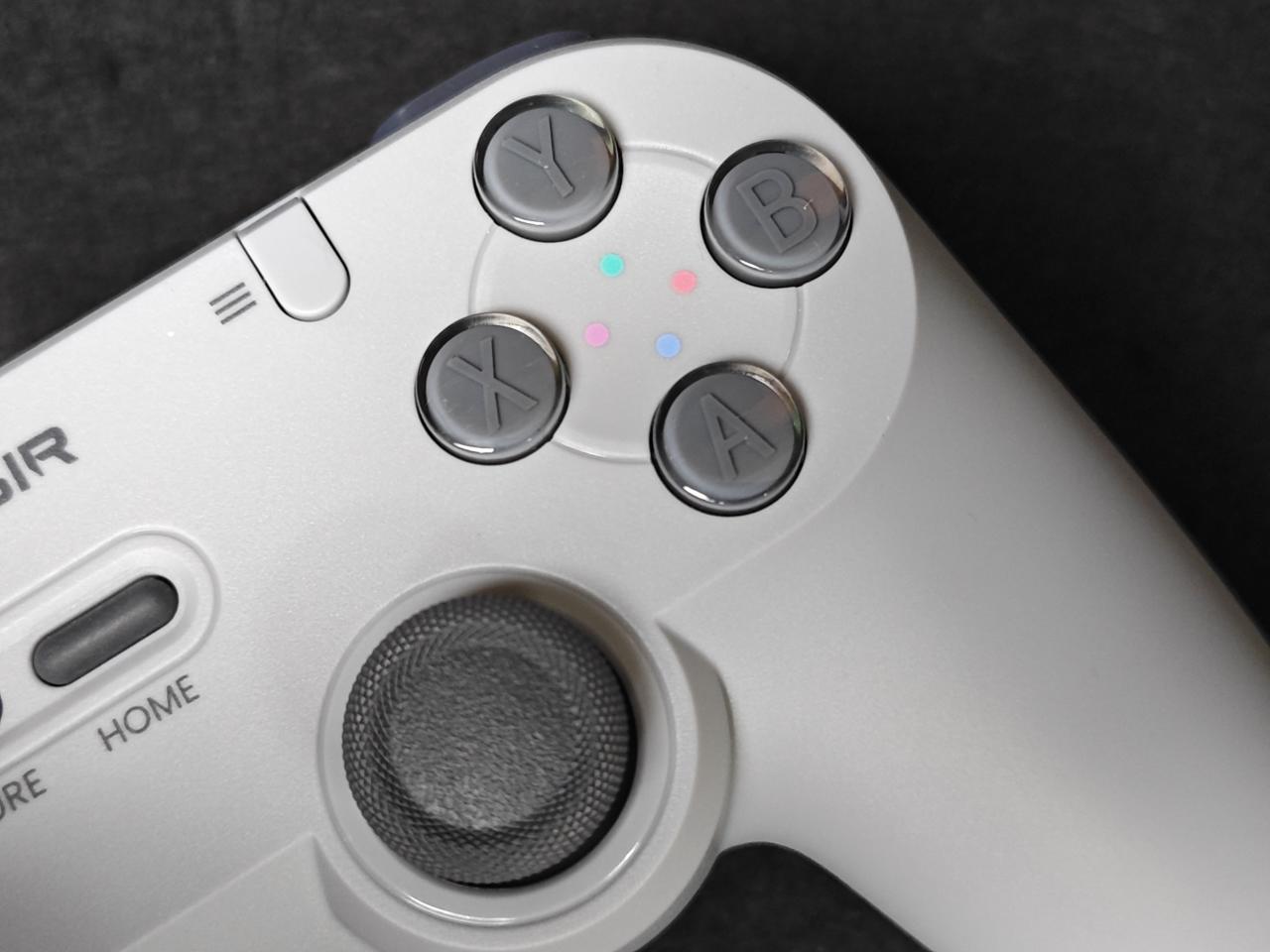 手柄的動作鍵爲xbox排布,鍵帽用的是高透的水晶鍵,按鍵爲大平頂,能夠加大與指腹的接觸面積,更加容易觸發。開關用的是200萬次壽命的導電膠,按鍵按壓吸入感很強,回彈迅速,雖說價位低,但調教一點不含糊。導電膠的優勢也非常明顯,不僅非常靜音,久按也不容易累手。不過我覺得靈狐的動作鍵間距較寬,需要一定時間適應。