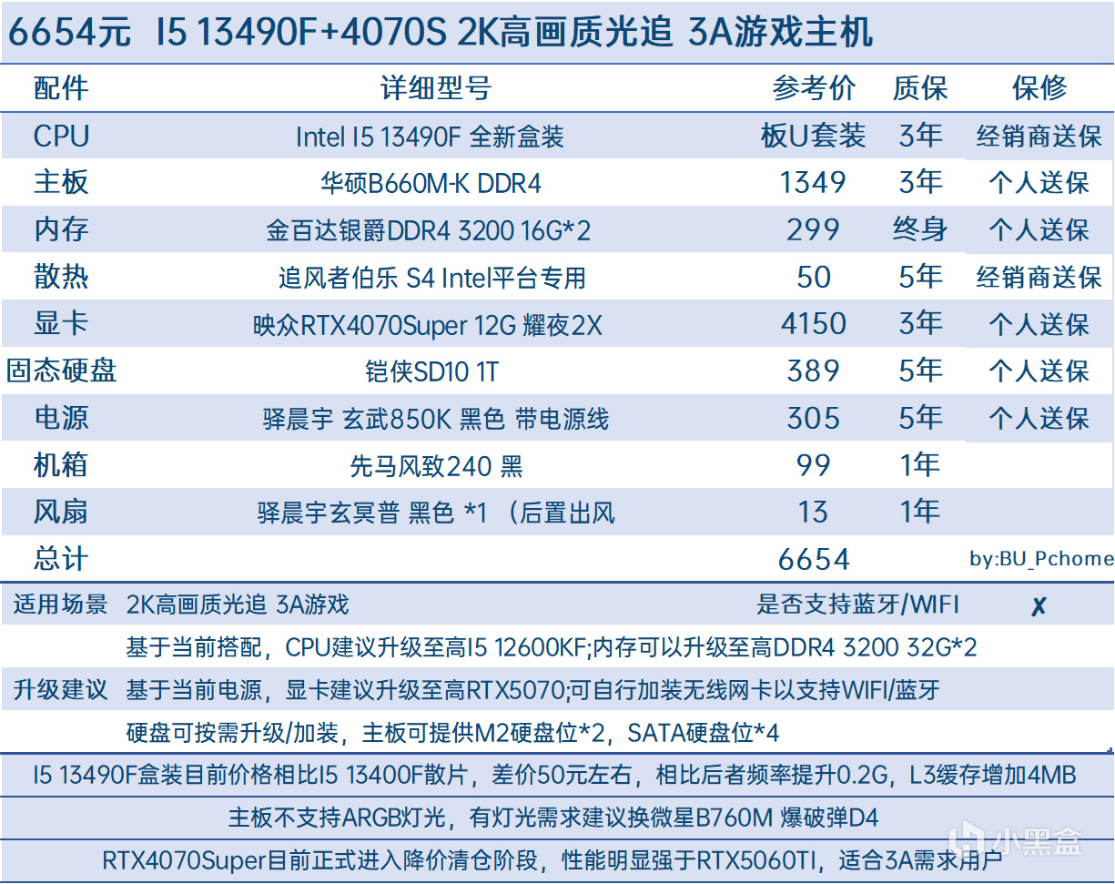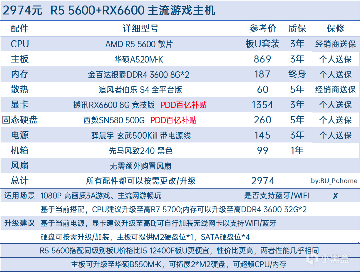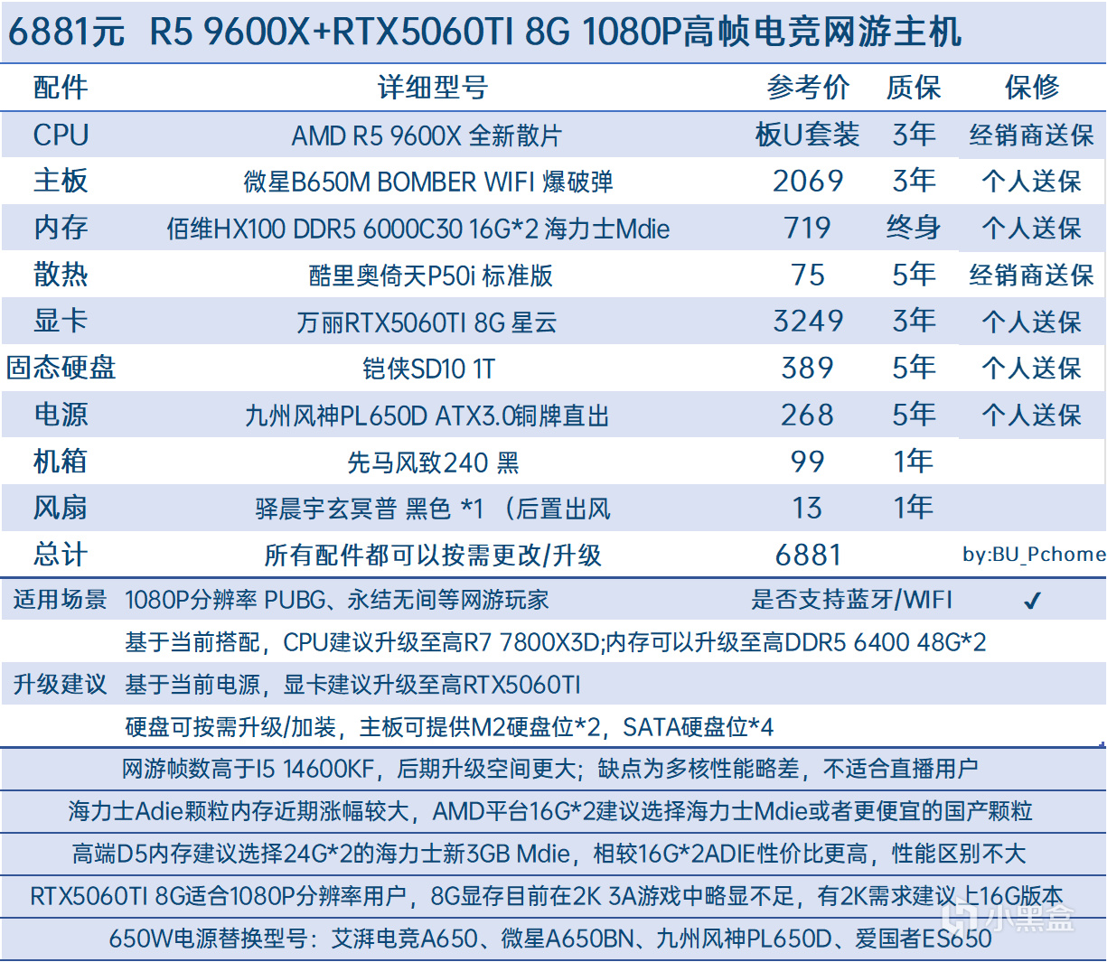 1. 文中給的配置單可以看作是基本框架,對硬件有自己的理解都可以自行更換想要的配件。圖裏的配件基本都是在滿足性能要求下的性價比選擇;