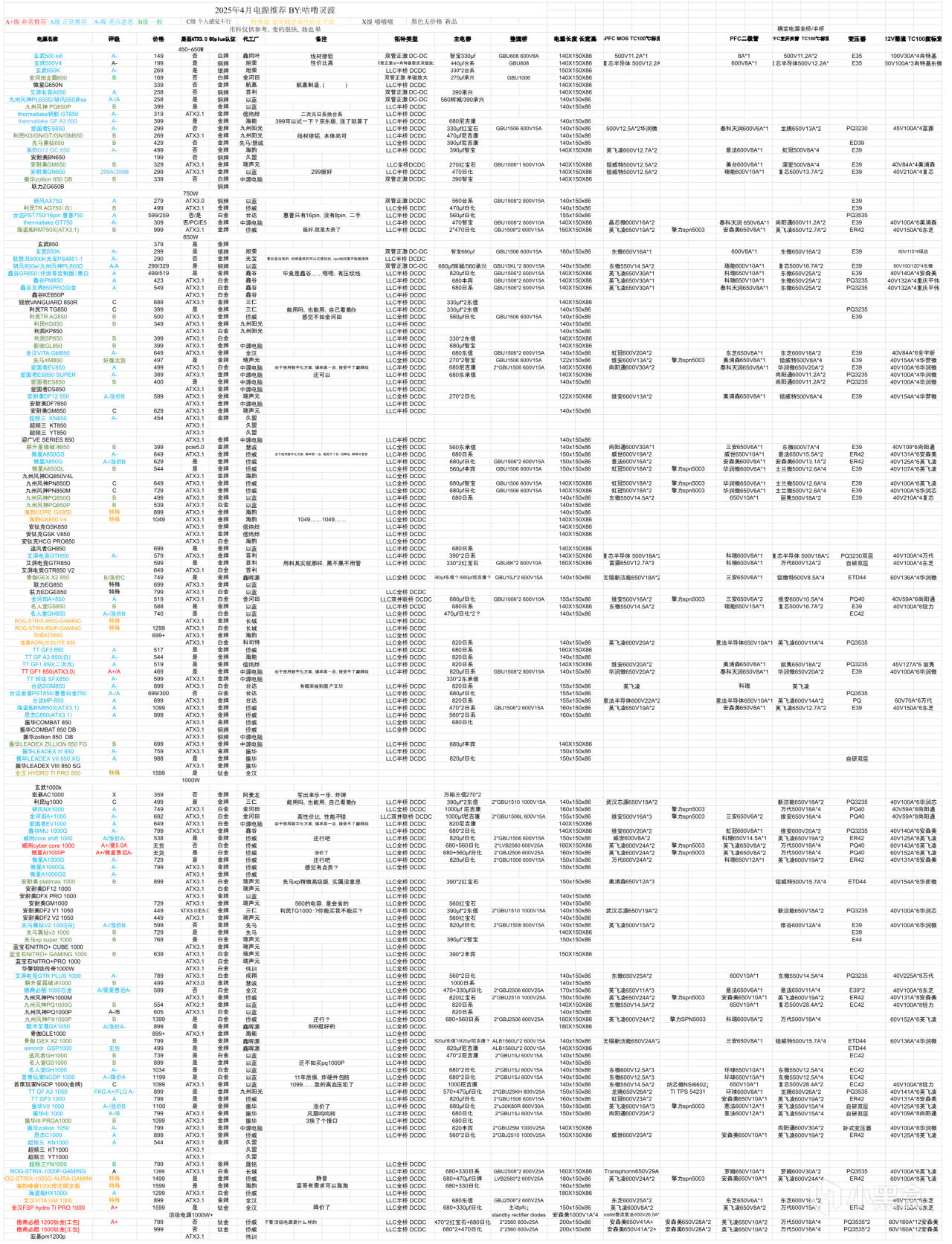 附圖爲電源推薦/顯卡天梯榜/CPU天梯榜(查看原圖更清晰)