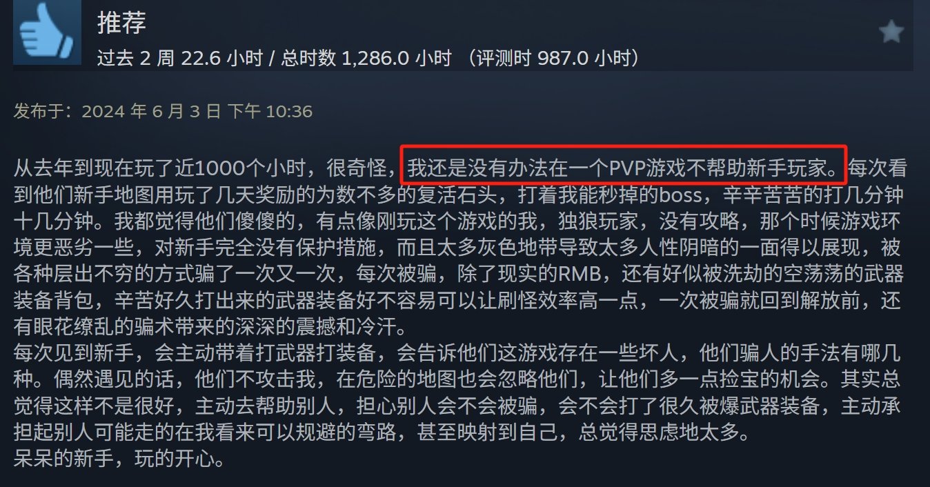 玩了近1000個小時,我還是沒有辦法在一個PVP遊戲不幫助新手玩家