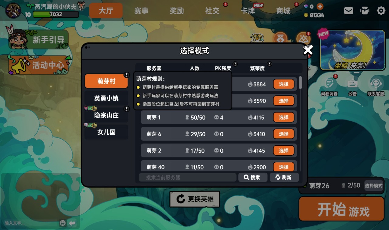 爲了保證新玩家的體驗,遊戲爲“巨龍I”等級以下的玩家開放了專屬新手服務器“萌芽村”