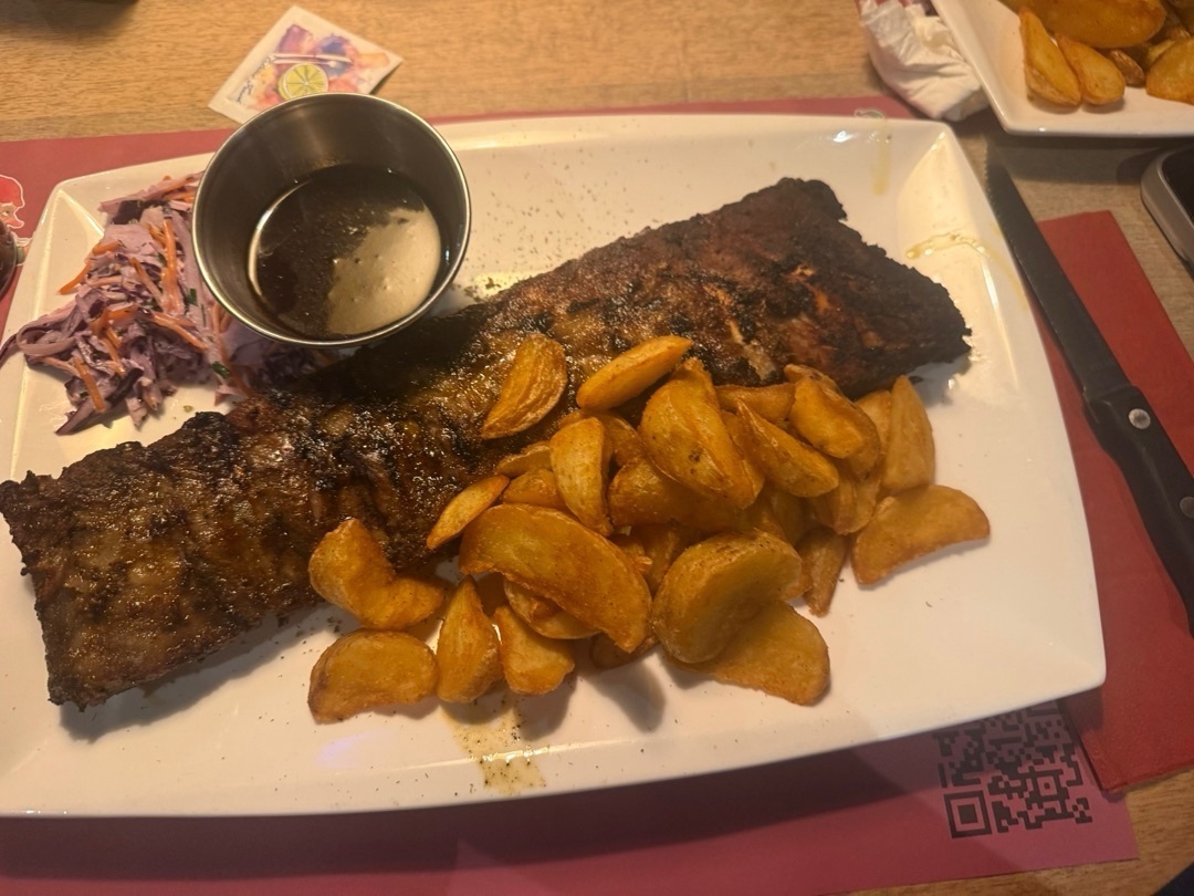 最後一站是布魯日。由於一天都沒怎麼喫東西了所以決定先去喫晚飯。找了一家自助烤排骨店準備狠狠炫一把。味道很不錯不過喫了兩整份就飽了。