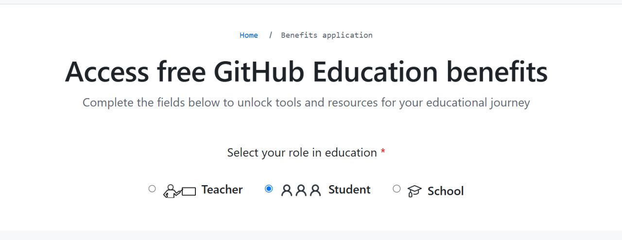 首先我們要進入[申請學生包的網址](https://education.github.com/discount_requests/application)