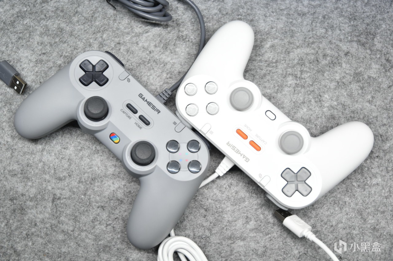 配色方面手柄有復古灰和簡韻白兩種配色,顏值上覆古灰會更好看一些,也更接近20年前的手柄一些,其彩虹色的M鍵,更是爲手柄增加的多樣的色彩,不過價格上也會貴10塊。