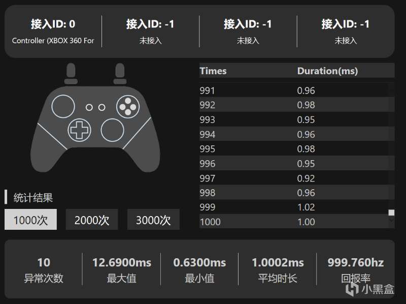 回報率方面小雞保持了1000hz的高水平,死區上默認爲5%,支持無死區,按照以往經驗我按下M鍵及搖桿,成功開啓了無死區模式,開啓後回中精度可以保持在0.05之內,比較有意思的是,切換後外圈調教也會改變,由圓形改爲方形。