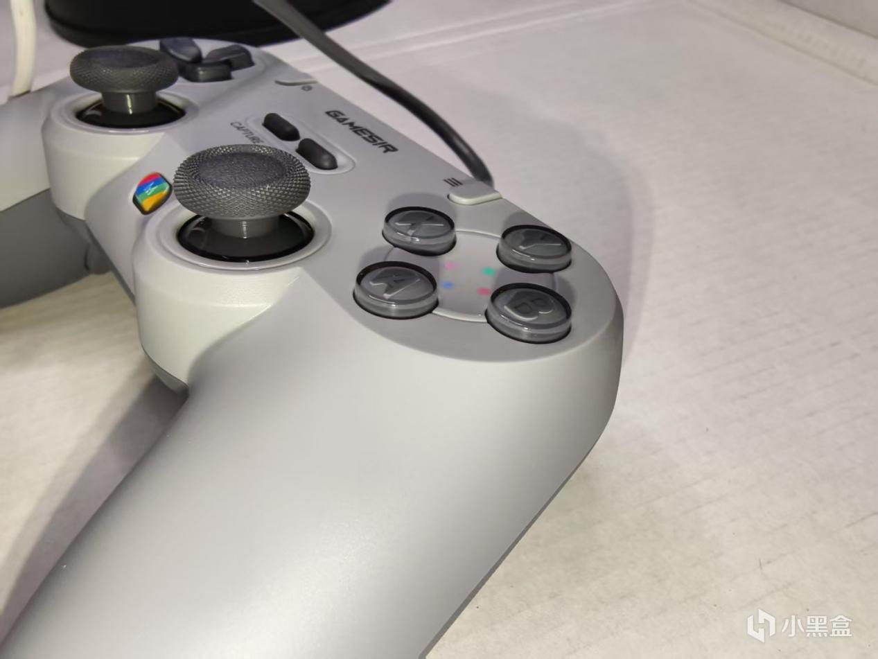手柄的搖桿是小雞定製霍爾搖桿,阻尼比較輕,壽命也有500萬次超長壽命,死區可調節5%死區/0死區雙模式,周圍有耐磨環,推動絲滑無漂移,外圓方框設計精準捕捉斜向操作。響應速度快,回報率也有1kHz,2ms超低延遲,有線方式連接下,手柄搖桿非常流暢,媲美百元手柄毫無問題。