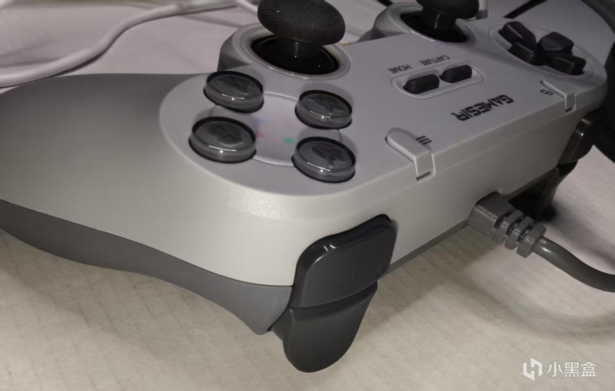 碳膜線性扳機。255級細膩分級,幾乎沒有什麼明顯的空鍵程。馬達是XBOX同類型的擺錘馬達,5檔震動調節,震感細膩。