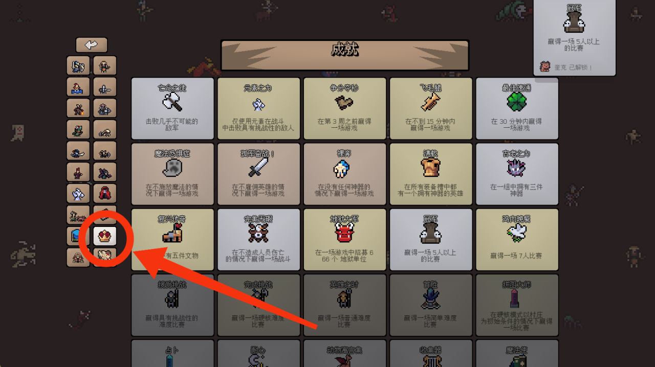 ⑤.选择一个没解锁的“成就”,将鼠标箭头挪到那里并单击鼠标左键