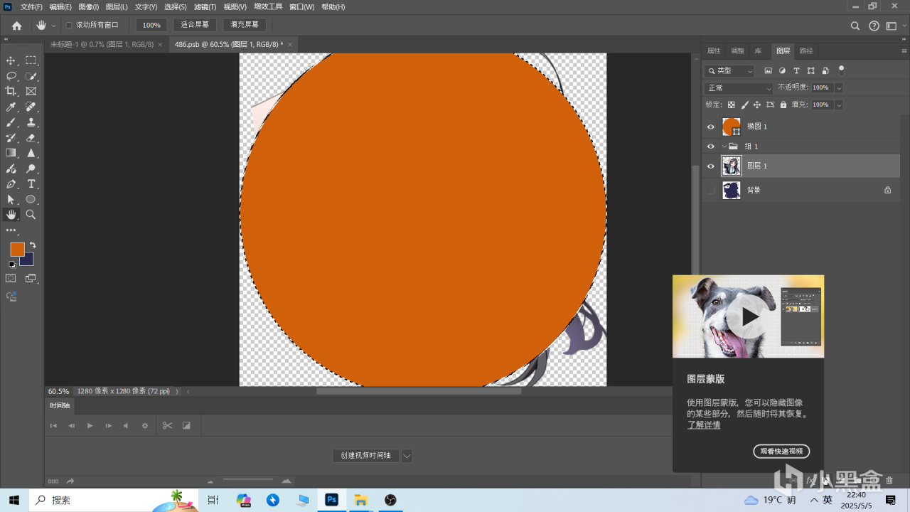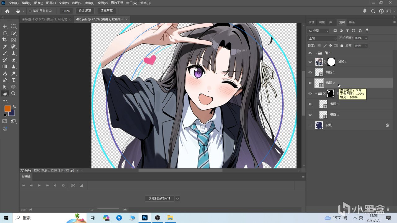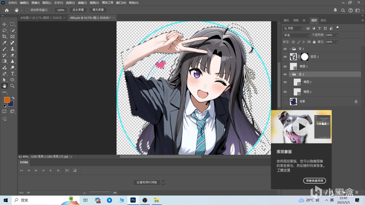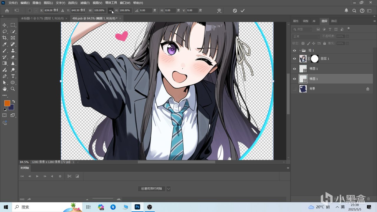 這時候你會發現素材圖被扣了圓形大小的圖層,這個就是我們用作頭像的地方,防止白底過多。