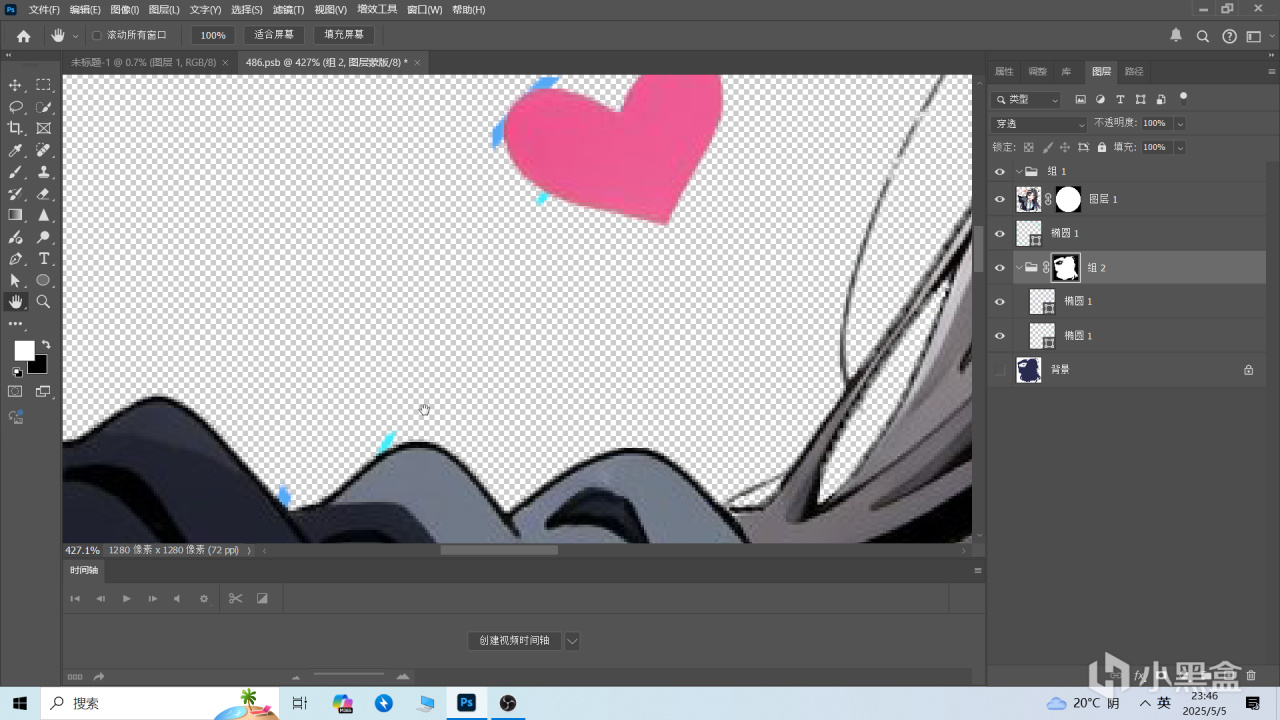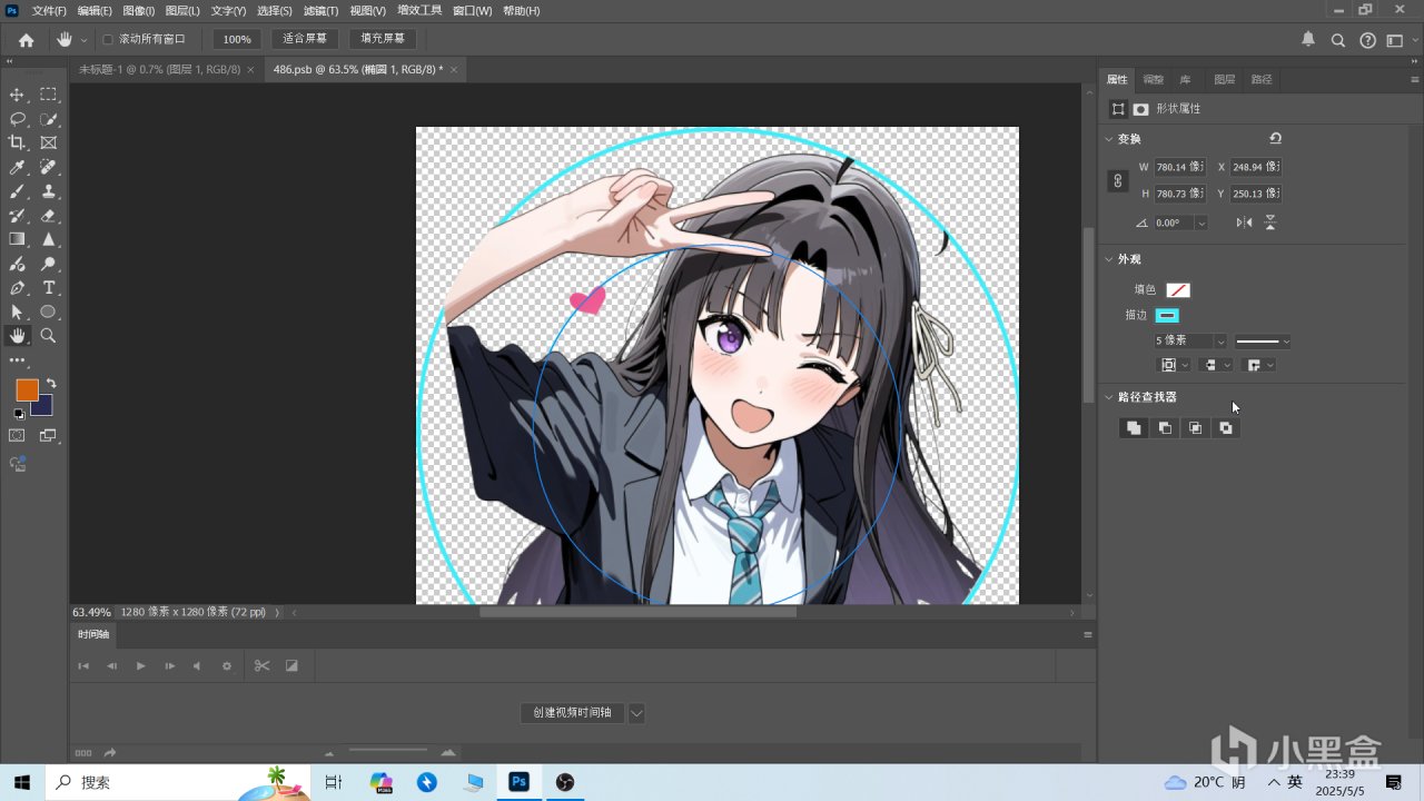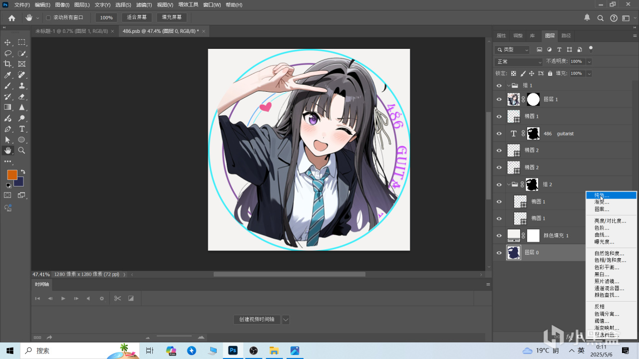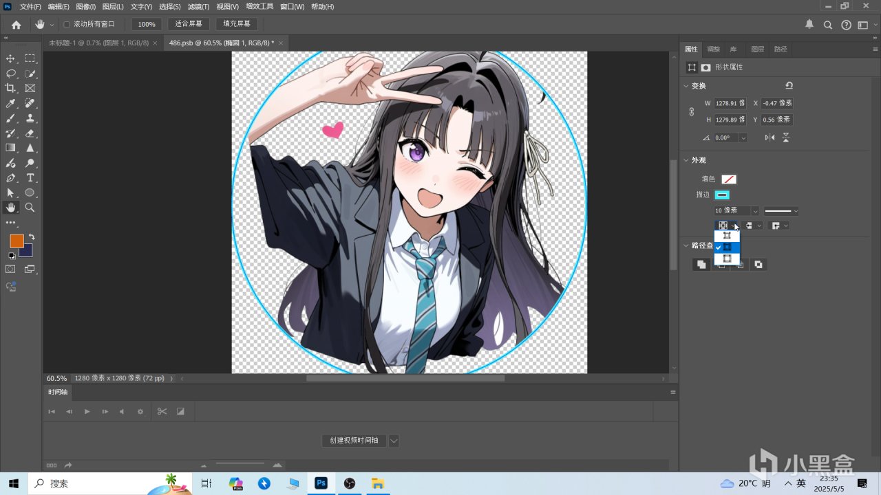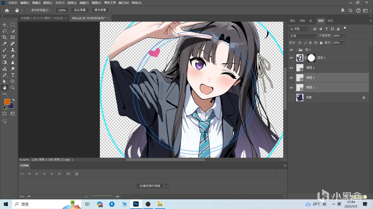 這時候你會發現素材圖被扣了圓形大小的圖層,這個就是我們用作頭像的地方,防止白底過多。