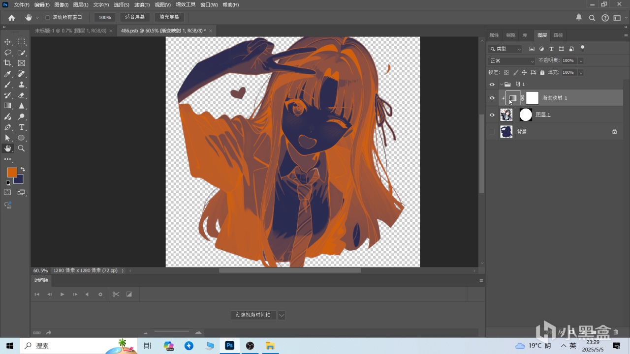 打上漸變後如圖所示,再選擇”漸變映射1“圖層,按住”CTRL+ALT+G",裁剪該圖層。(剪切好後如下圖)