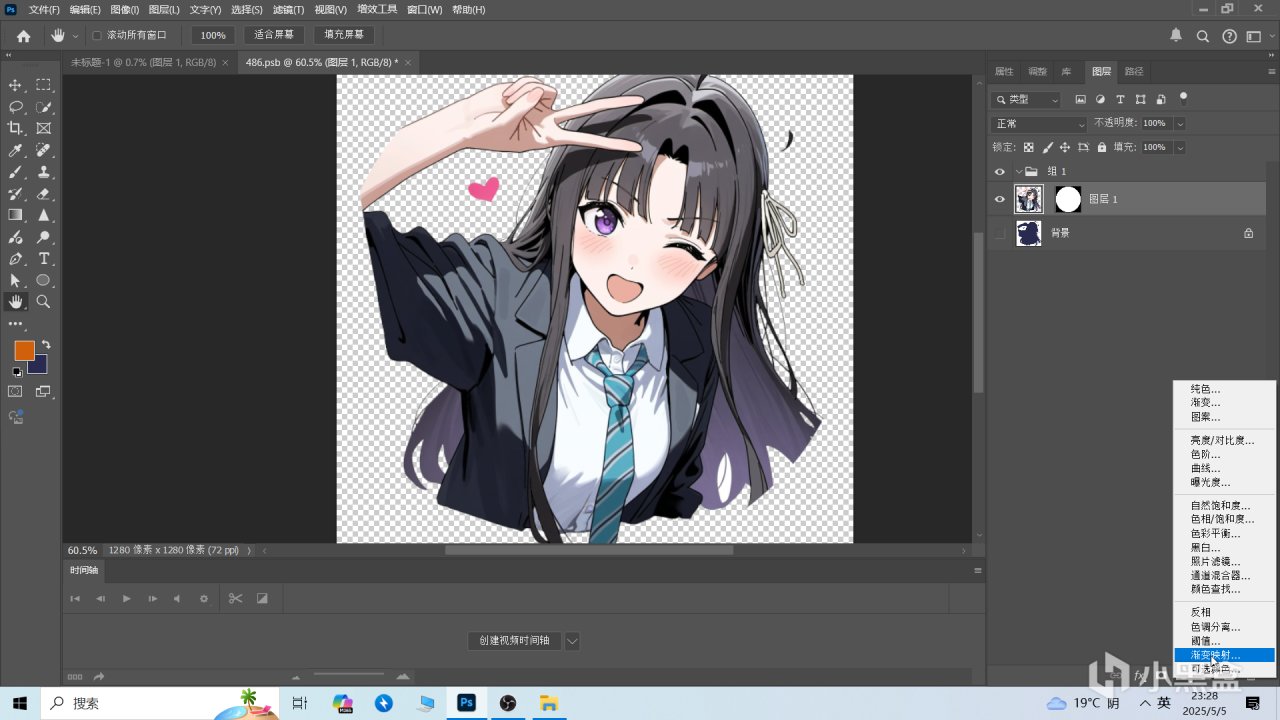 第3步驟:這個時候我們再選擇”圖層1“圖層,也就是扣好後的素材圖片,點擊右下角的”漸變映射“。(此步驟用於黑白素材,彩色素材可跳過至第4步)