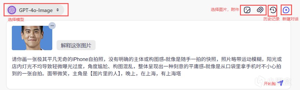 那麼如果要插入圖片,且不想要二次元形象呢?就點擊右下角的圖片圖標或者附件,選擇你的圖片之後填入以下提示詞
