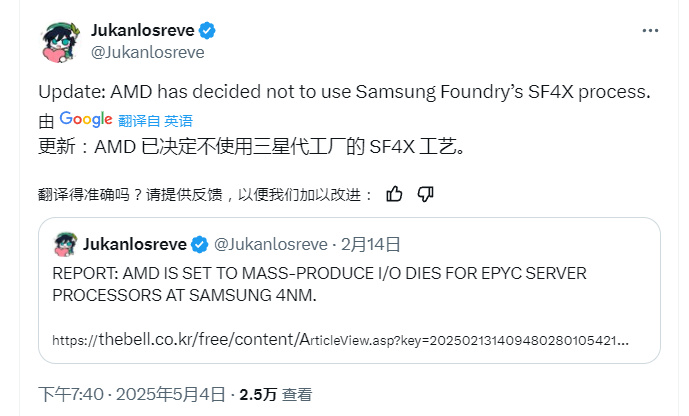 原本AMD採取了雙代工策略,當時報道稱AMD與三星在SF4X工藝上展開廣泛合作,不限於EPYC服務器,還有銳龍APU和Radeon GPU。這些動態被視爲三星的重大利好消息,然而現在卻一轉攻勢。