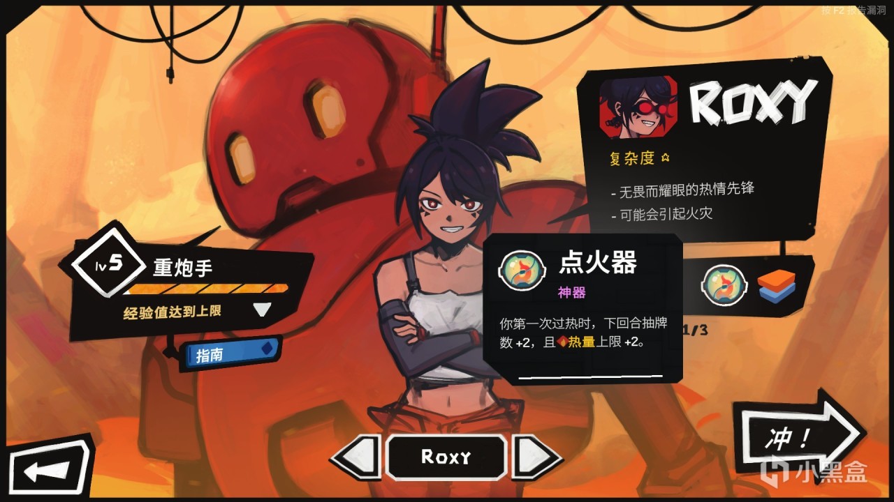 不要着急,讓我們來看看角色,ROXY的特性是進入過熱狀態後增加最大熱量和抽牌數量,這樣一來下回合會迎來一個小爆發。