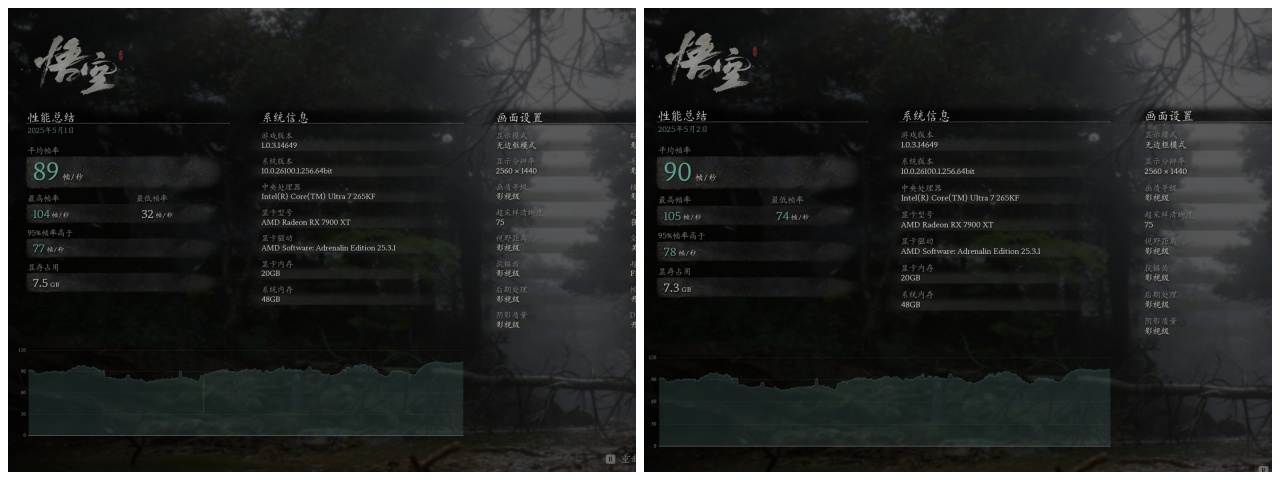 黑神话.悟空性能测试工具测试,比较开启前后相差无几,但是最低帧默认配置是32帧/秒,而开启Boost后,最低帧是74帧/秒,提升了一倍。