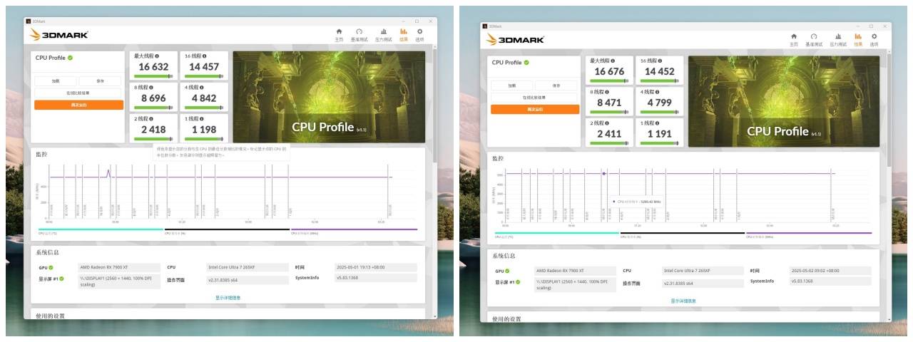 3DMARK CPU Profile测试,两种情况下基本相同。