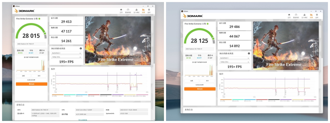 3DMARK Fire Strike Extreme,两者分数相差不大。