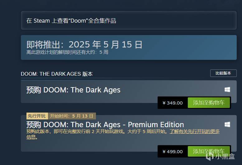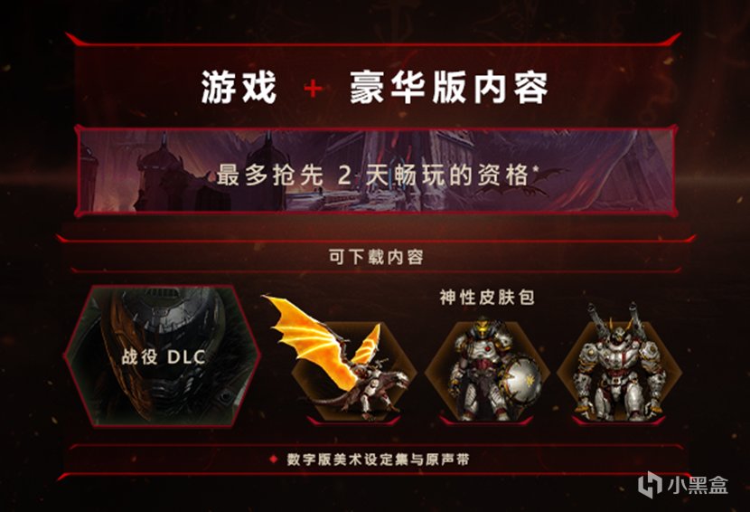 此外,豪華版的預購玩家與普通版的預購玩家相比,除可以提前2天體驗《毀滅戰士:黑暗時代(DOOM: The Dark Ages)》外,還將解鎖: