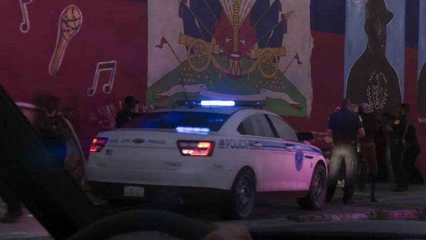 中间的警车是一辆猛牛·STX,这不是她第一次出现在预告片里,通过逐帧分析可以看出这是一辆Vice Dale县警察的车,对应现实中的Miami Dade County Police Department (MDPD).