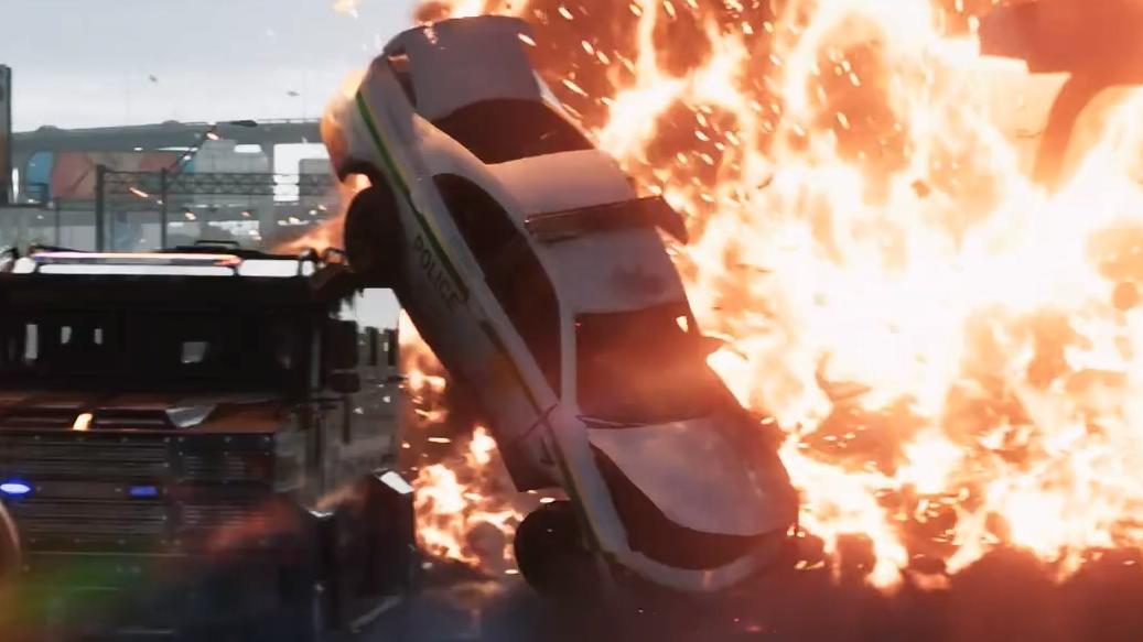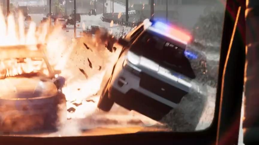 位于爆炸镜头最右侧的显然是一辆威皮警用SUV,依据其前脸整体造型,应该是结合了现实中的2016以及2020款福特警用拦截者(Ford Police Interceptor Utility, FPIU).