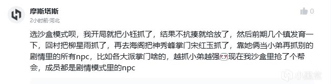 作者有嘗試“活着的江湖”,故事中的人物有着自己的生活軌跡:大部分角色都不會是一次性的“登場和退場”,而是都包含了連續的任務鏈,這樣的設定會讓人感覺他們是作爲一個“有血有肉”的人生活在這個世界之中。