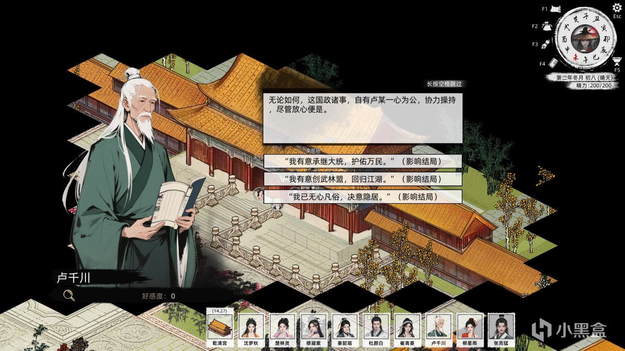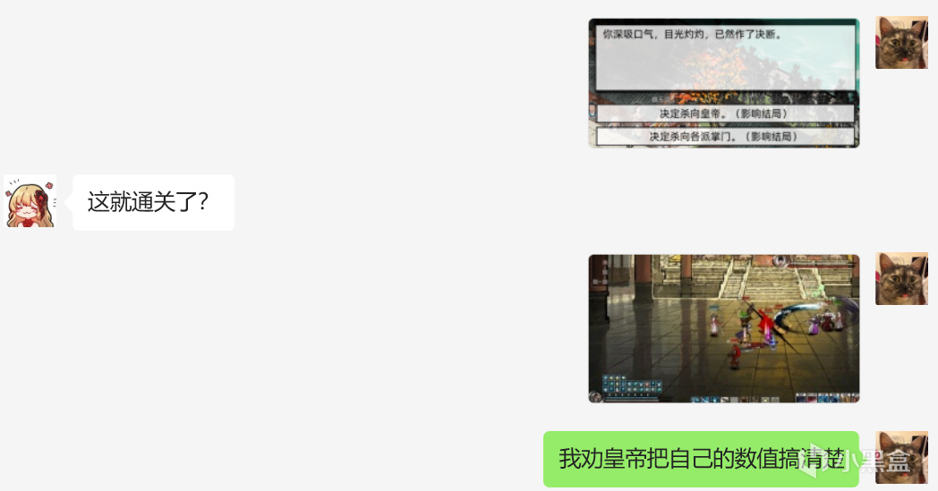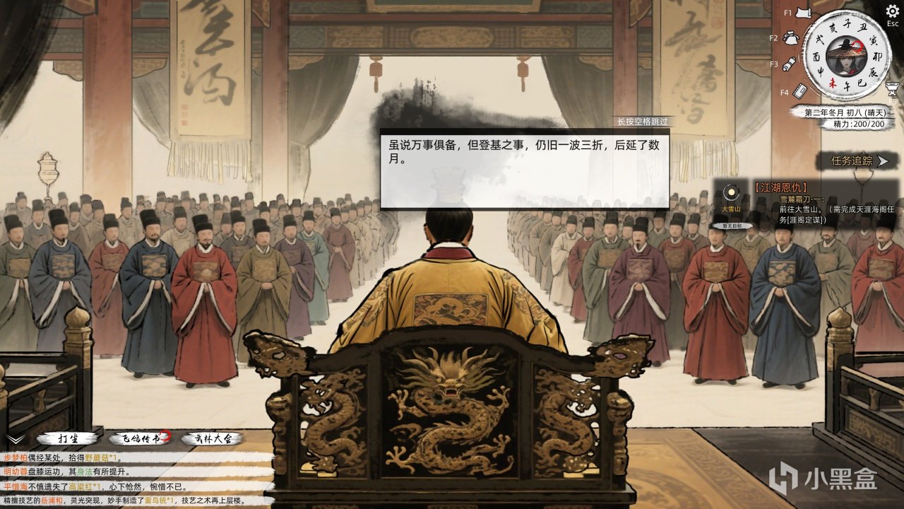 隨後我一路從新手村砍到紫禁城,一路收同伴、打劫匪、做任務、收集神兵利器、突破武學境界,最後成爲了字面意義的皇帝!