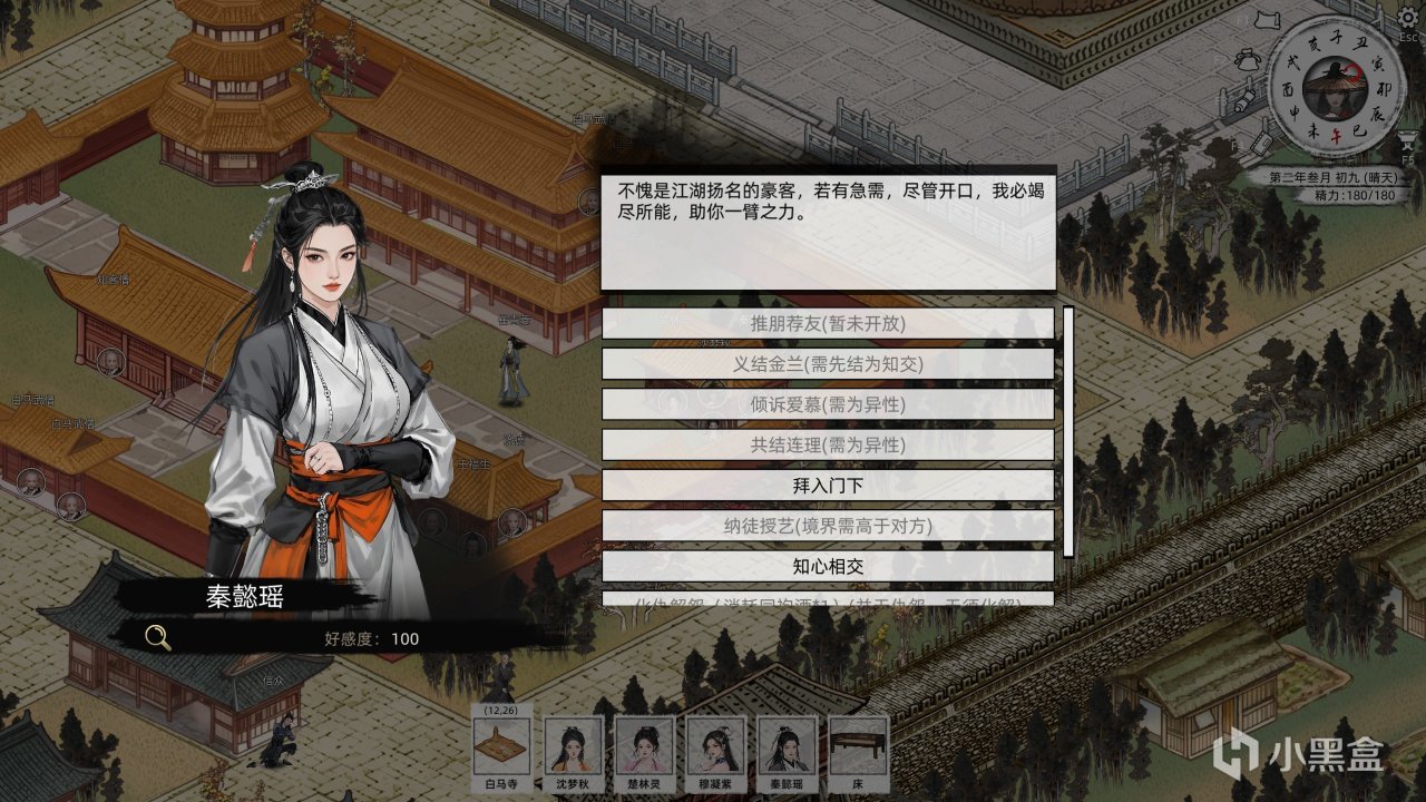 遊戲本身預設一套類似於《太吾繪卷》或者《鬼谷八荒》的人際交互玩法,和其他角色可以成爲朋友、師徒和情侶(不能百合差評)。